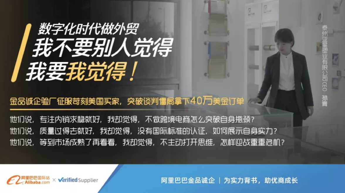开通金品诚企是在2016年,一个契机是我希望将我的线下实力展示到线上,而且以更加真实、有说服力的方式。我们企业规模是很大的,所以特别看重视频验厂,欧美国家看重的这些第三方检测,在金品的平台上可以有更好的展现。 近半年来,我们的业务增长量增长了500%,业务转化提高了30%,询盘增长量是600%,基本上都是为精准客户。这是我们非常希望所看到的,询盘不在于多,关键是要精准。 之前有一位美国客户,我们跟了差不多6个多月的时间,客户对我们产品、寄样之类的都非常满意,但是因为他是一个大型的进口商,所以他需要对我们的企业实力有一个实地的勘测,但是有没有时间来验厂,一直拖了一两个月的时间,所以我们就迟迟没有办法进展。后来金品上线后,我就把线上的验厂视频和验厂报告都发给他,他就非常干脆下了单。九月采购节的时候,他又给我们下了一个40多万美金的订单,我们成为4星商家,这个大单功不可没。