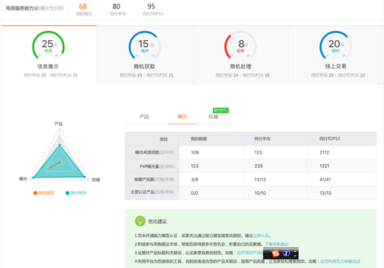 “電商操作能力分”是從買家視角對供應商線上電商能力的綜合評分體系,從企業、產品實力的展示到獲取商機、處理商機及線上交易…等行為,